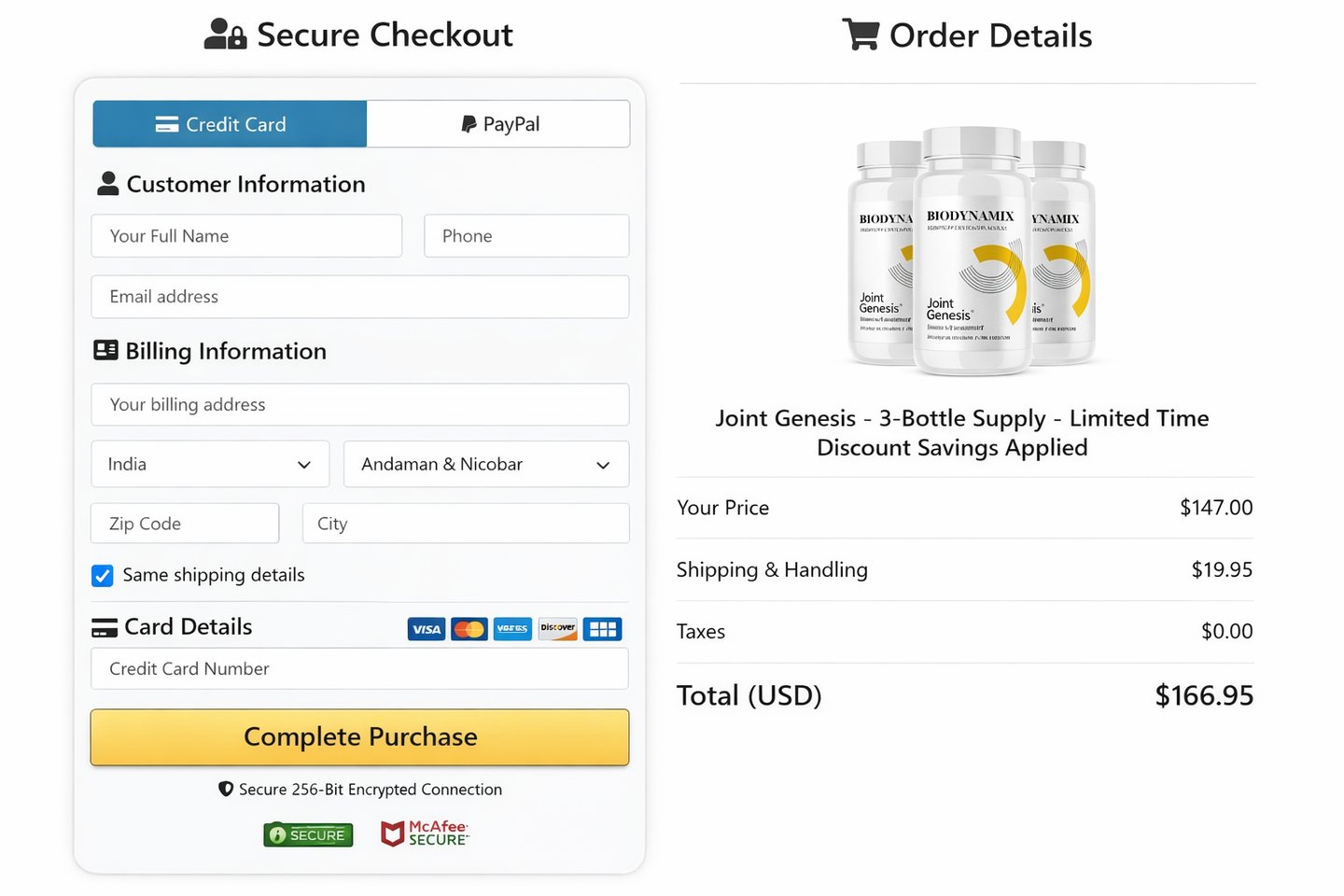 Once you have clicked the "Buy Now" button that is right below this test, you will be taken to the secure checkout page.